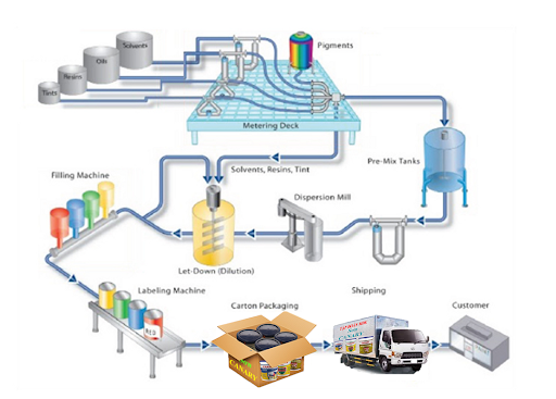 Để ra được một sản phẩm sơn hoàn chỉnh, cần trải qua quy trình sản xuất sơn tường như sau: